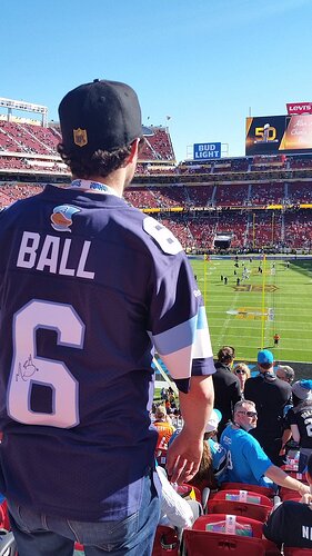 #Argos Marcus Ball fan at the Super Bowl. Look at those classical Argos jerseys. via @CFL #CFL #BoatLogo